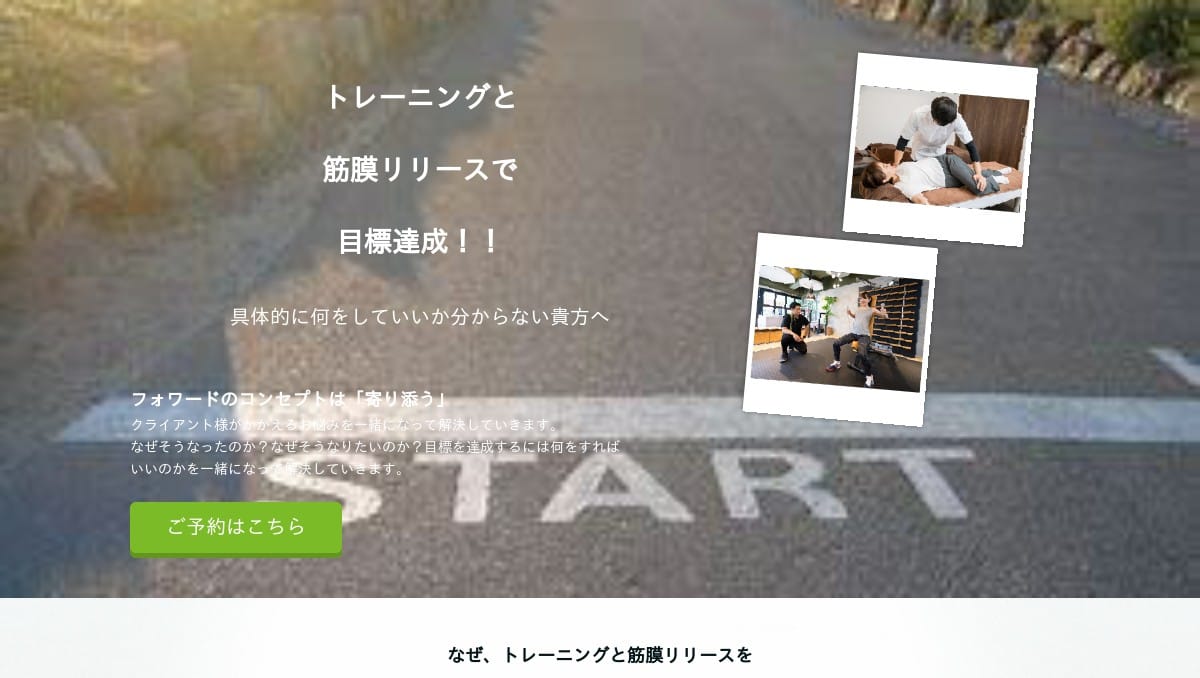 Forward Bodymake 小野町勝川駅から徒歩5分月曜日 10:00~20:00 水曜日 10:00~20:00 木曜日 10:00~20:00 金曜日 10:00~15:00 土曜日 10:00~20:00 (最終受付:19:00) 定休日:毎週火・日曜日・祝日筋膜リリース整体とトレーニングを一体化した80分の施術→トレーニング→ケアの独自メソッドで、検査に基づく個別プログラムを提供。経験豊富なトレーナー陣がオンラインやDNAファスティングを組み合わせて理想の体と体質改善を長期支援します。トレーニング単価(税込)2,250円/h〜入会金(税込)-月会費(税込)-公式サイトを見るプラントレーニング単価(税込)総額(税込)回数時間期間都度払いパーソナルトレーニング30分¥6,000/h¥3,0001回30分-他3件のプランを見る