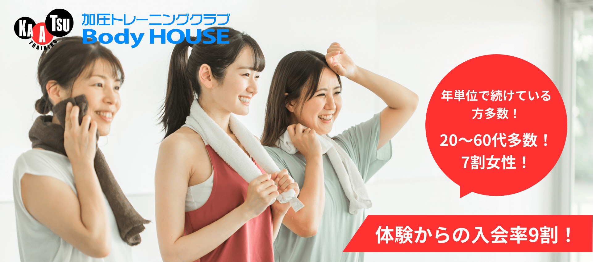 加圧トレーニングBodyHOUSE小垣江駅から徒歩6分刈谷市の加圧専門スタジオ。20〜60分の短時間トレーニングで効率的に効果を出し、経験豊富なトレーナーが個々に圧を調整して指導。ダイエット・筋力アップ・エイジングケアを低価格で提供します。短時間で効果を実感しやすく、体力に自信がない方や忙しい方に適しています。トレーニング単価(税込)2,310円/h〜入会金(税込)6,000円〜月会費(税込)-公式サイトを見るプラントレーニング単価(税込)総額(税込)回数時間期間回数券目指せ筋力UP&有酸素運動コース(50〜60分) - 12回券¥4,270/h¥47,00012回55分-他19件のプランを見る