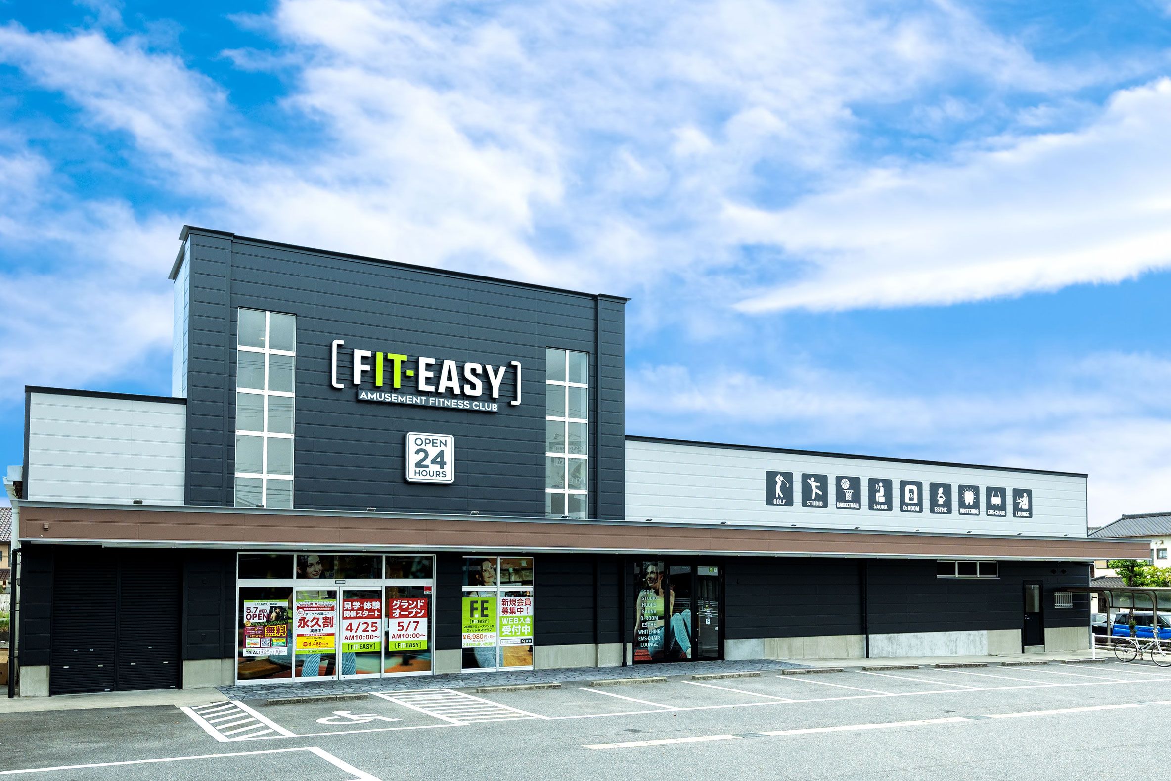 フィットイージー 高浜店ゴルフシミュレーションや個室サウナ、高濃度酸素ルーム、セルフエステ(女性専用)やFIT‑CHAIRなど多彩な専用設備を備え、AI顔認証で全店舗相互利用できる点が魅力。24時間のバーチャルスタジオやプロテインサーバーもあり、目的に合わせて選べる総合施設です。トレーニング単価(税込) -入会金(税込)-月会費(税込)-公式サイトを見る
