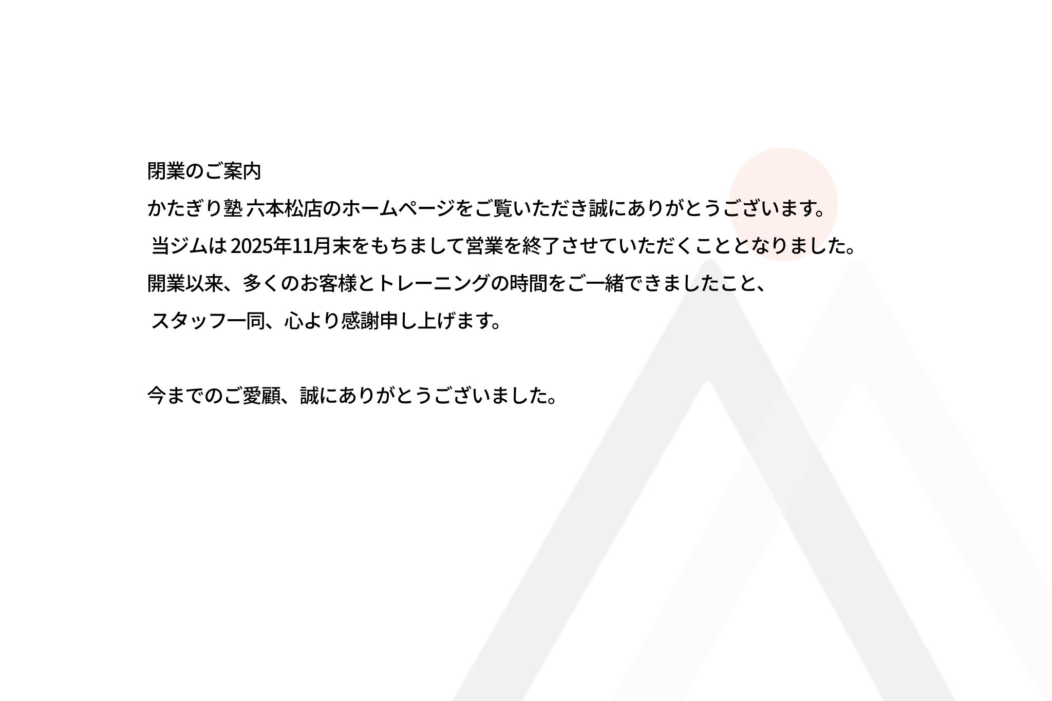 かたぎり塾 六本松店定休日理学療法士監修の科学的メソッドで、低価格な完全個室パーソナルトレーニングと食事指導を提供。継続しやすい並走型で、手ぶらOKの無料ウェア・シューズ・プロテイン、無理な勧誘なしが魅力。トレーニング単価(税込)7,430円/h〜入会金(税込)無料月会費(税込)-無料体験はこちらプラントレーニング単価(税込)総額(税込)回数時間期間月額制月8回プラン¥7,430/h¥59,4008回60分最低1ヶ月他2件のプランを見る