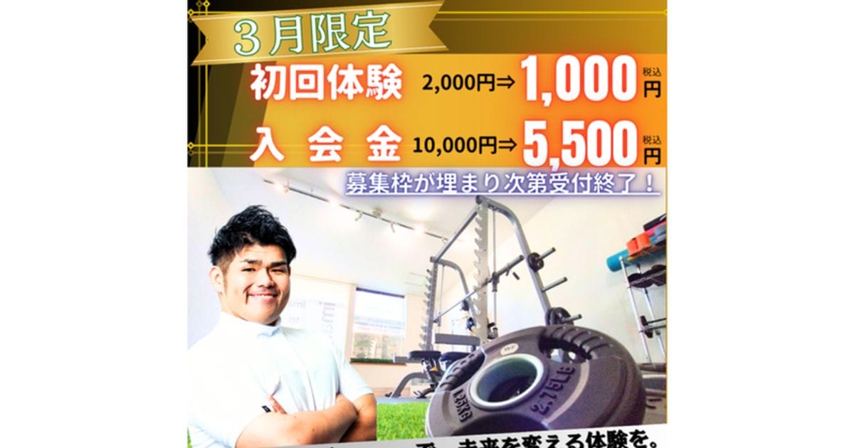 imamu.月〜土 9:00~21:00、日 定休日北見市のimamu.は、オーダーメイドのパーソナルトレーニングと整体を融合し、初心者からアスリートまでリハビリや本格ボディメイクに対応。大会優勝経験のあるトレーナーがLINE食事指導と連携して結果を出します。トレーニング単価(税込)2,810円/h〜入会金(税込)5,500円〜月会費(税込)-公式サイトを見るプラントレーニング単価(税込)総額(税込)回数時間期間月額制個人 60分 月12回¥4,680/h¥56,20012回60分最低1ヶ月他14件のプランを見る