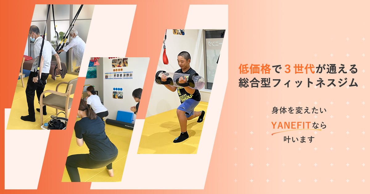 出典:YANE FIT 公式サイトYANE FIT加古川駅から徒歩15分月~金 9:00〜21:00(最終受付20:00)、土・祝 9:00〜18:00、休業日 水・日加古川のYANE FITは1名対最大6名のセミパーソナルとFAST TRAINING®を併設。短時間で速筋を刺激する血流制限パーソナルや2か月集中のダイエットコース(食事アドバイス付)で効率的に成果を出します。トレーニング単価(税込)3,000円/h〜入会金(税込)10,000円〜月会費(税込)-公式サイトを見るプラントレーニング単価(税込)総額(税込)回数時間期間月額制セミパーソナルトレーニング 月4回¥3,670/h¥11,0004回45分最低1ヶ月他13件のプランを見る