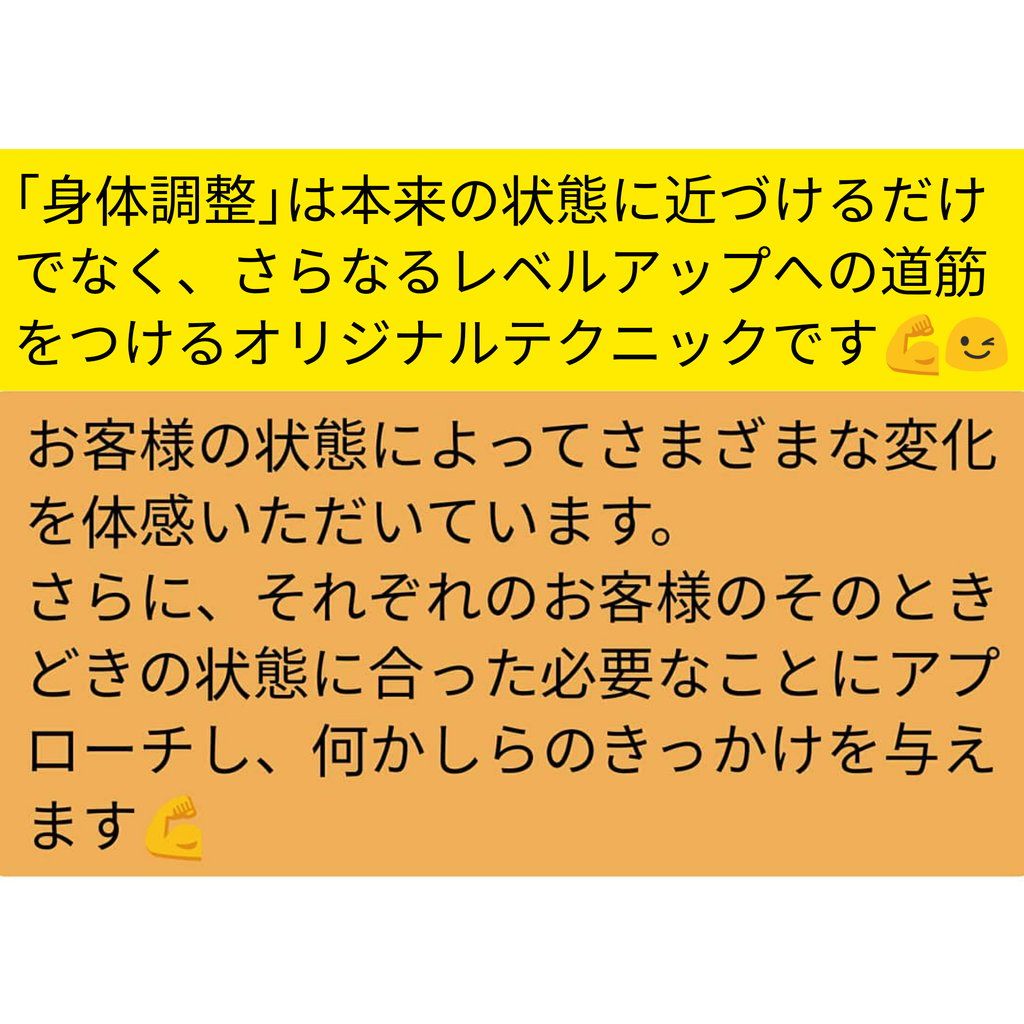 都度払い身体調整(40分) | ¥7,500/h | ¥5,000 | 1回 | 40分 | - |