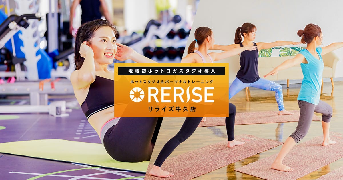 RERISE 牛久店牛久駅から徒歩3分月水木金 10:00~23:00、土 10:00~19:30、日祝 10:00~19:00牛久市初のホットスタジオを核に、2フロアのマシンジムと多彩なレッスンを併設。経験豊富なトレーナーが1対1で個別に指導し、短期の成果と継続しやすいプログラムで目標達成を支援します。ホット環境(約34~36℃)でのデトックスや、駐車場完備で通いやすい点も魅力です。トレーニング単価(税込)6,600円/h〜入会金(税込)5,500円〜月会費(税込)-公式サイトを見るプラントレーニング単価(税込)総額(税込)回数時間期間月額制レギュラープラン-¥8,800--最低1ヶ月他5件のプランを見る