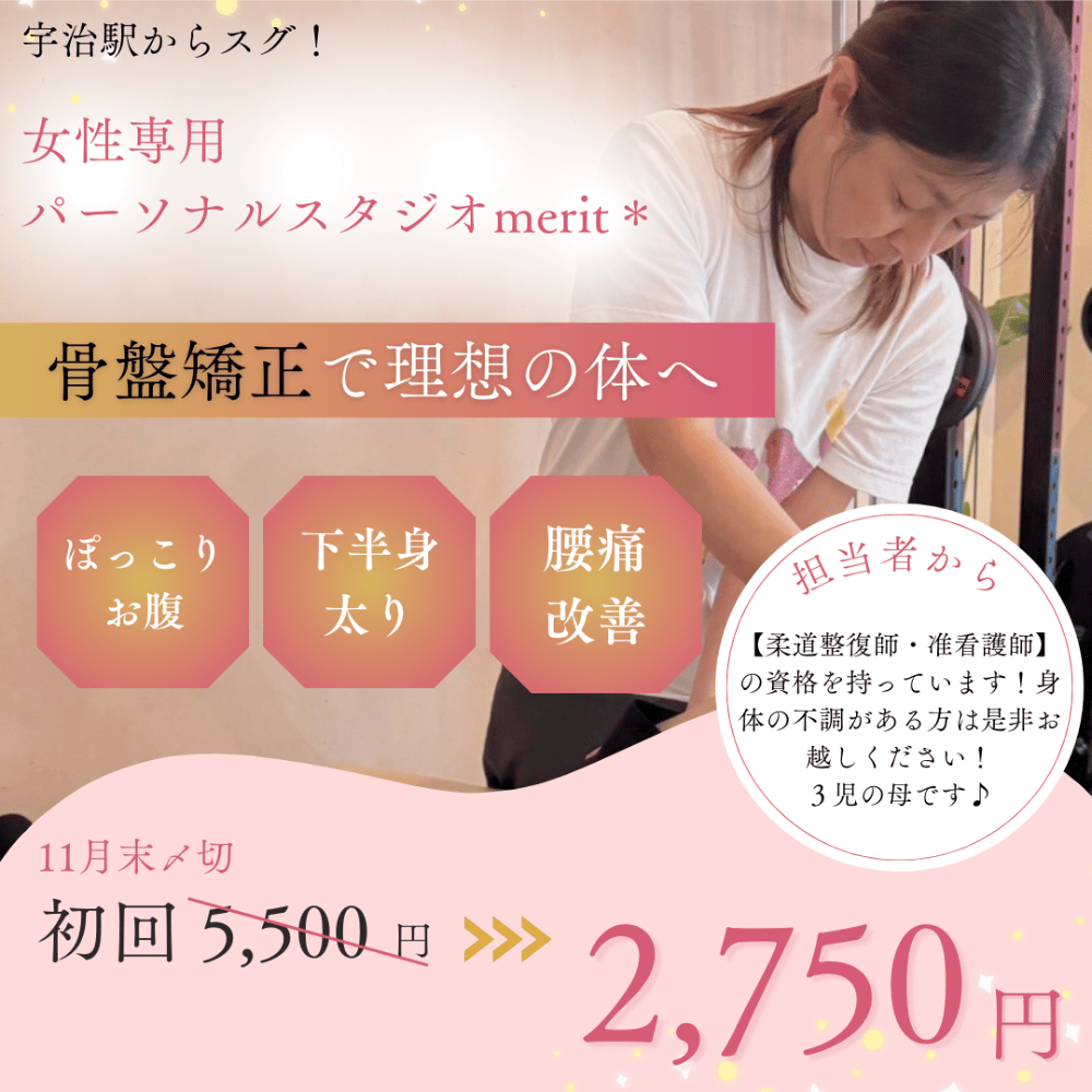 ReViNa 宇治店宇治駅から徒歩5分9:00〜23:00宇治駅徒歩5分の完全個室パーソナルジム。大会入賞経験を持つトレーナーがマンツーマンでオーダーメイド指導を行い、科学的な食事管理と2年のアフターフォローでリバウンドを防ぎながら美しく引き締めます。トレーニング単価(税込)4,400円/h〜入会金(税込)11,000円〜月会費(税込)-公式サイトを見るプラントレーニング単価(税込)総額(税込)回数時間期間月額制部分痩せコース¥4,950/h¥39,6008回60分最低2ヶ月他9件のプランを見る