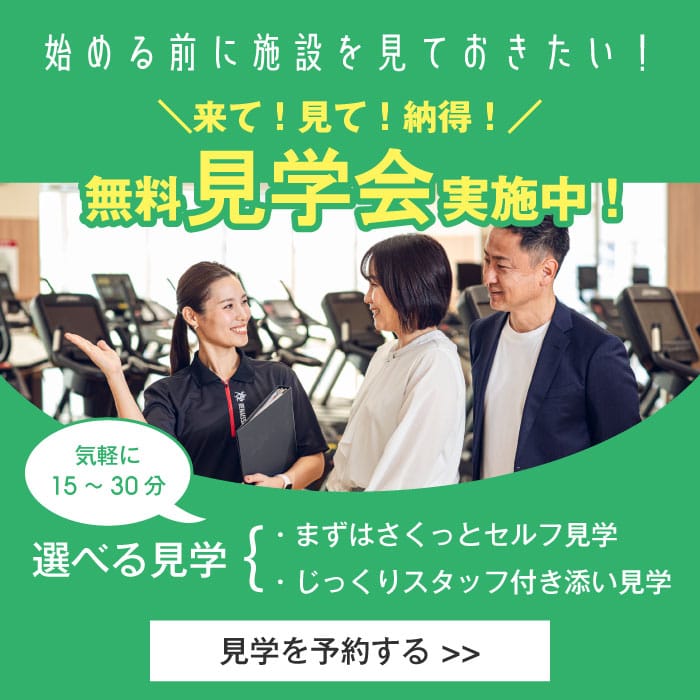 長居トレーニングセンター長居駅から徒歩10分火曜日〜土曜日 9:00〜21:30(最終受付20:30)/日曜日・祝日 9:00〜18:00(最終受付17:00)長居競技場内の約800m2の開放的なトレーニング室で、フリーウエイトや動的ストレッチ機器を完備。個別カウンセリングでオリジナル運動プログラムを作成し、有料のマンツーマン指導や多彩な有料レッスンで初心者〜アスリートまで効率的に鍛えられます。トレーニング単価(税込)800円/h〜入会金(税込)-月会費(税込)-公式サイトを見るプラントレーニング単価(税込)総額(税込)回数時間期間都度払い有料レッスン30分¥1,000/h¥5001回30分-他2件のプランを見る