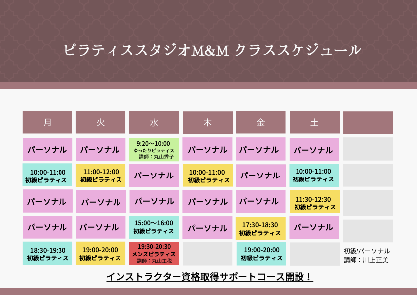 安曇野市田沢のピラティス専門スタジオ。マット・マシン(キャデラック)を完備し、少人数クラスと個別パーソナル(ジュニア対応含む)を提供。回数券や90分プレミアムもあり、姿勢改善やリハビリを指導員がサポートします。