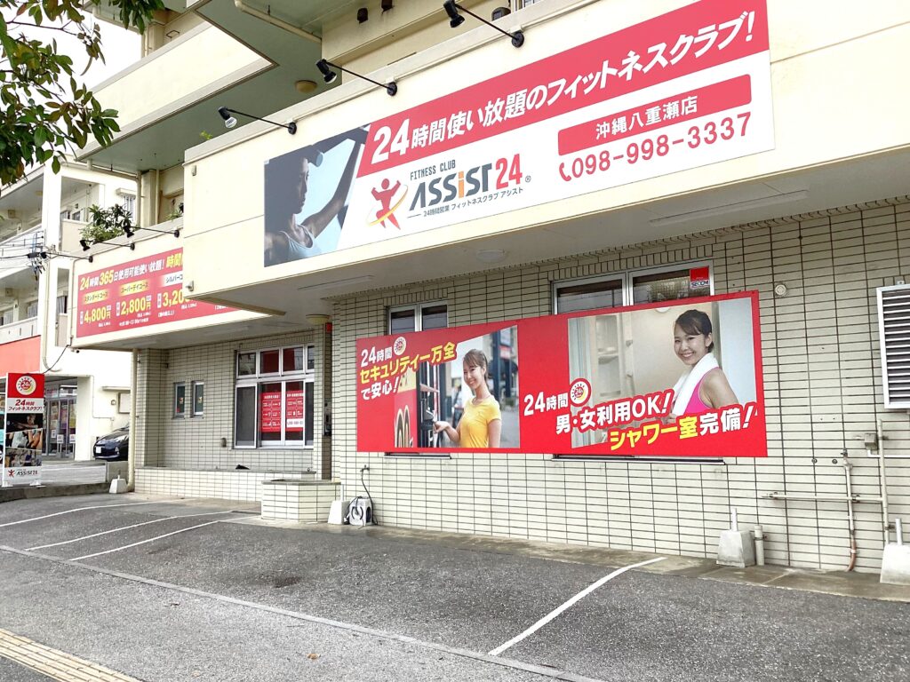 沖縄県島尻郡八重瀬町のアシスト24沖縄八重瀬店。24時間営業の低価格フィットネスでシャワー・ロッカーを完備。スタッフ常勤時間内に無料見学・体験を実施し、スタンダード会員は条件により全国の店舗を利用できます。