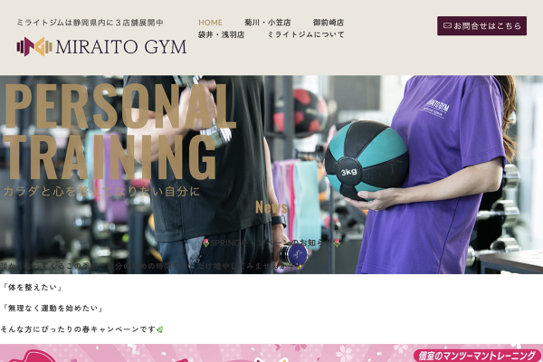 静岡県袋井市浅名のミライトジム浅羽店は、24時間ジム併設で、9:30~16:00に個別のマンツーマントレーニングを提供。無料体験あり、駐車場8台完備で地域のライフスタイルに合わせて通いやすい施設です。
