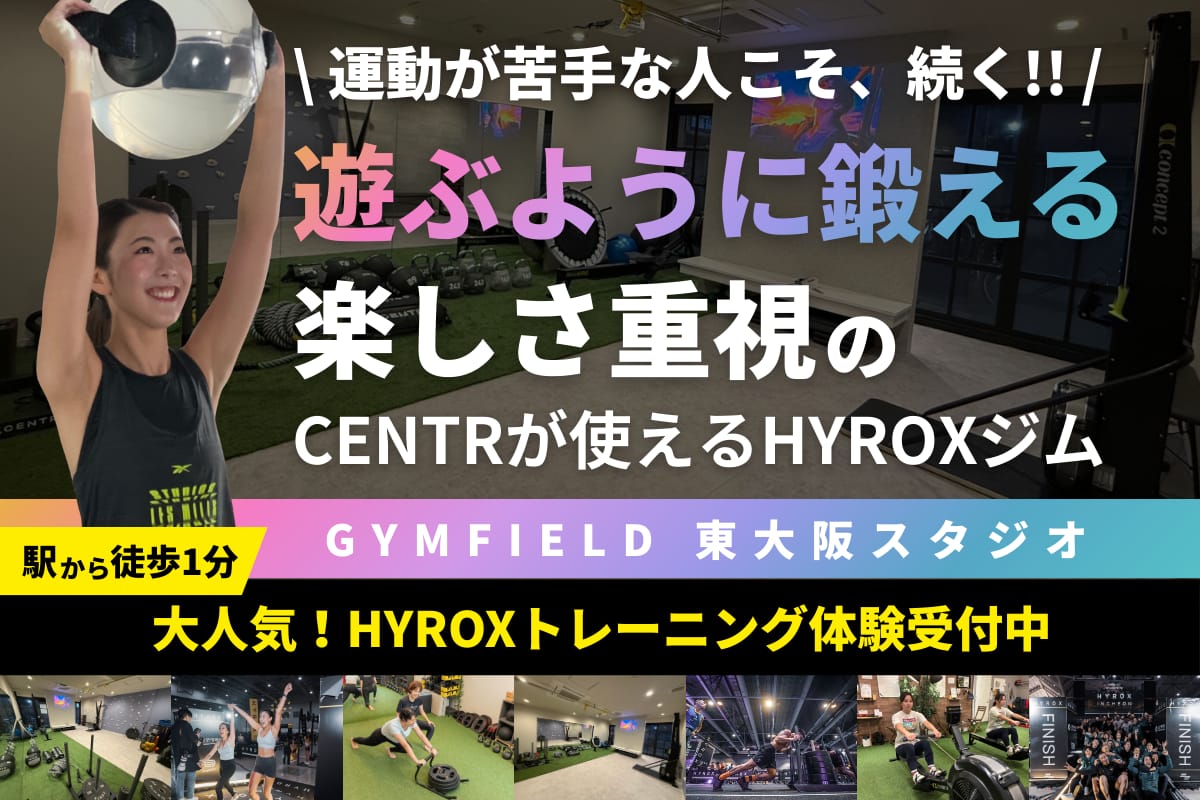芝生を敷いた開放的なスタジオで「遊ぶように鍛える®」を提供。HYROX公式プログラムや2ヶ月集中ダイエットを導入し、国際資格保有トレーナーと管理栄養士の連携で初心者でも楽しく結果を出せる点が強み。