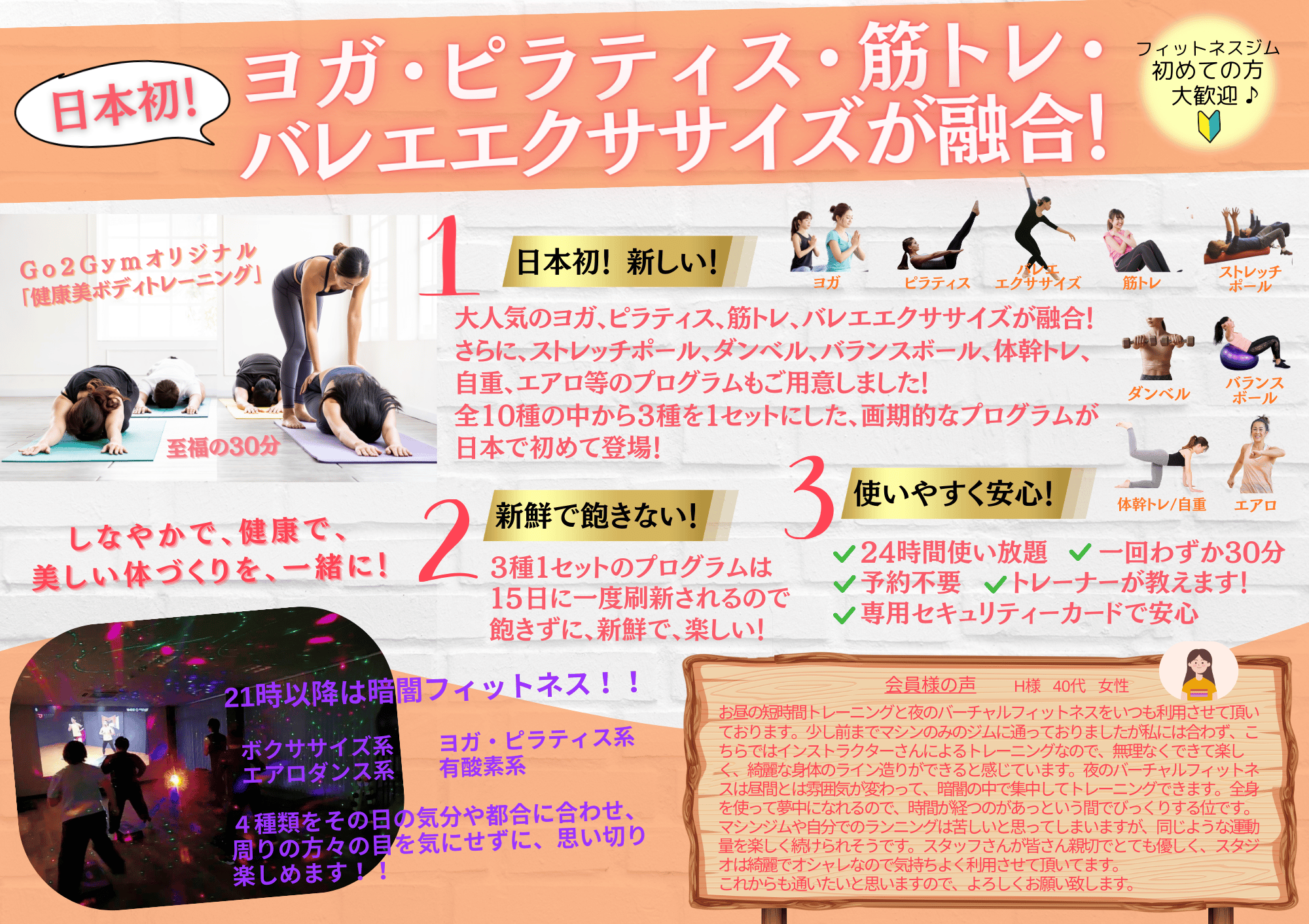 Go2Gym竹ノ塚駅から徒歩5分月~金 19:00~21:00NSCA-CPT資格トレーナー監修の15分刻みプログラムと予約不要の使い放題で結果を出すジム。リーズナブルに受けられる少人数セミパーソナルや45分の個別パーソナルで初心者や忙しい人でも続けやすく成果が出やすい点が強みです。トレーニング単価(税込)3,330円/h〜入会金(税込)16,500円〜月会費(税込)-公式サイトを見るプラントレーニング単価(税込)総額(税込)回数時間期間月額制セミパーソナル 月6回¥3,520/h¥10,5606回30分最低1ヶ月他7件のプランを見る