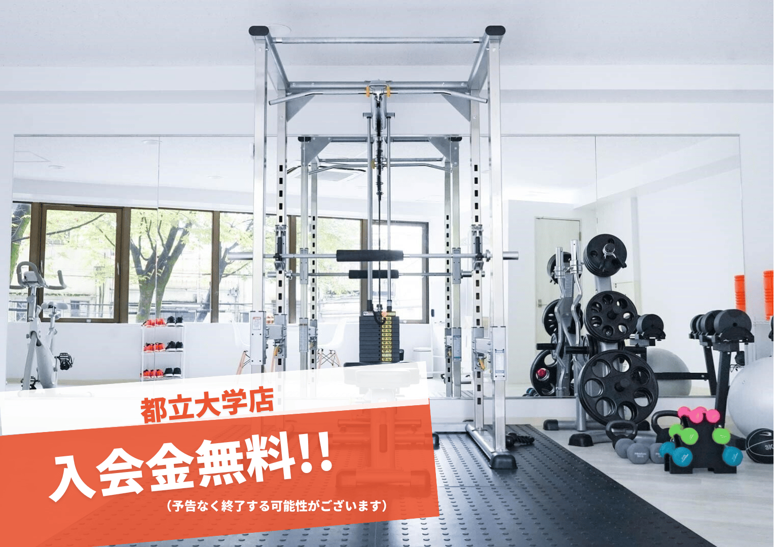 エニタイムフィットネス 都立大学店都立大学駅から徒歩7分24時間都立大学店は24時間営業のマシン特化型ジム。高品質なマシンとファンクショナルエリア、個室シャワーや女性専用エリアが充実し、有資格のパーソナルトレーナーによる60分単位の個別指導を受けられます。トレーニング単価(税込)5,630円/h〜入会金(税込)-月会費(税込)-公式サイトを見るプラントレーニング単価(税込)総額(税込)回数時間期間回数券60分コース(8回)¥5,630/h¥45,0008回60分-他3件のプランを見る