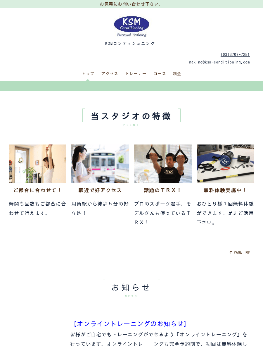 KSMコンディショニング用賀駅から徒歩5分用賀駅徒歩5分の個人向けスタジオ。TRXやケトルを用いた実践的なメニューで、スポーツ選手やモデルにも対応する個別指導を行います。オンライン指導も1対1で初回無料体験あり。時間や回数は柔軟に調整可能で、カウンセリングに基づく個別プログラムとコンディショニング指導に強みがあります。トレーニング単価(税込) -入会金(税込)-月会費(税込)-公式サイトを見るプラントレーニング単価(税込)総額(税込)回数時間期間月額制児童/特別支援コース----最低1ヶ月他2件のプランを見る