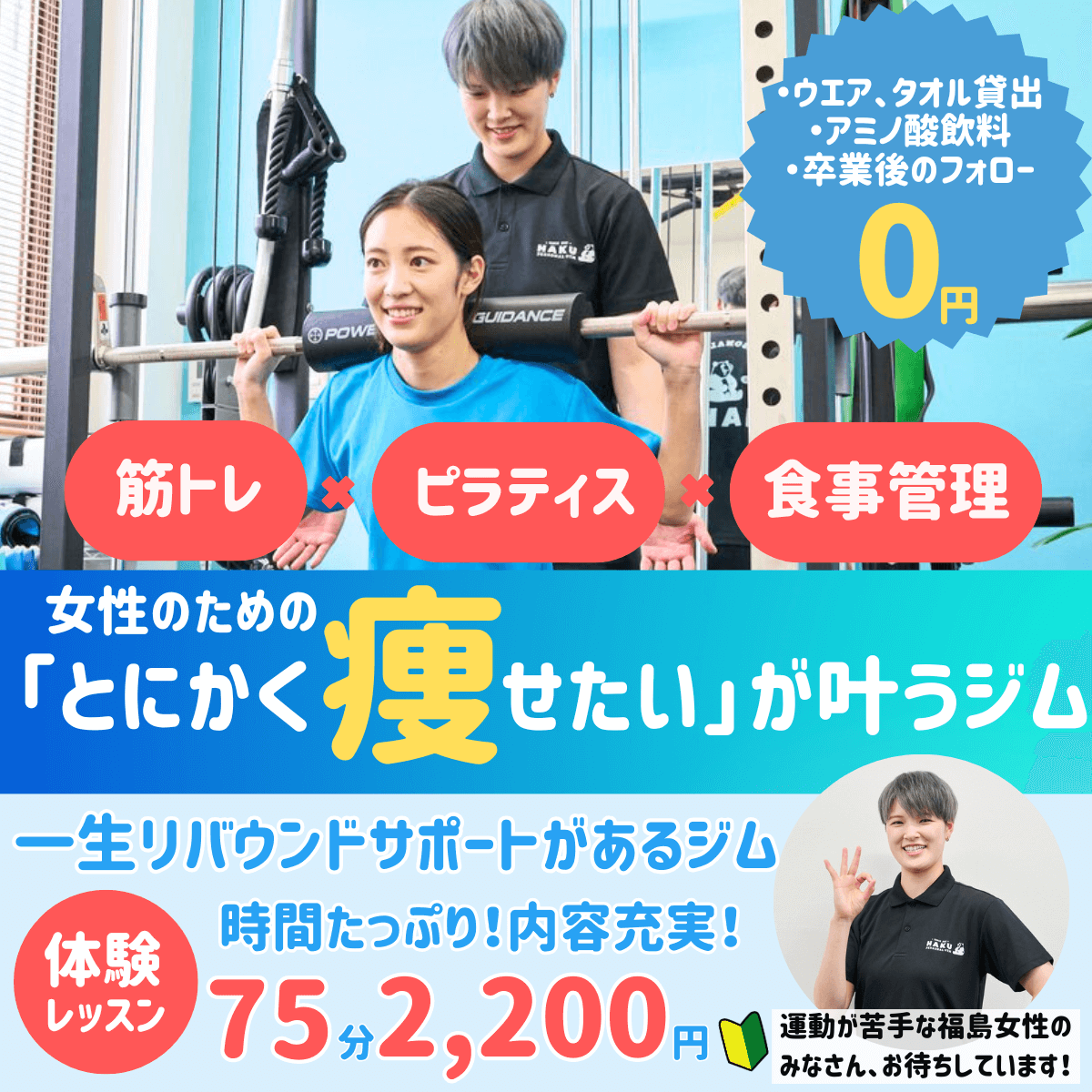 | パーソナルプログラム | - | - | - | 理学療法士が個別に作る怪我予防と競技力向上プログラム |